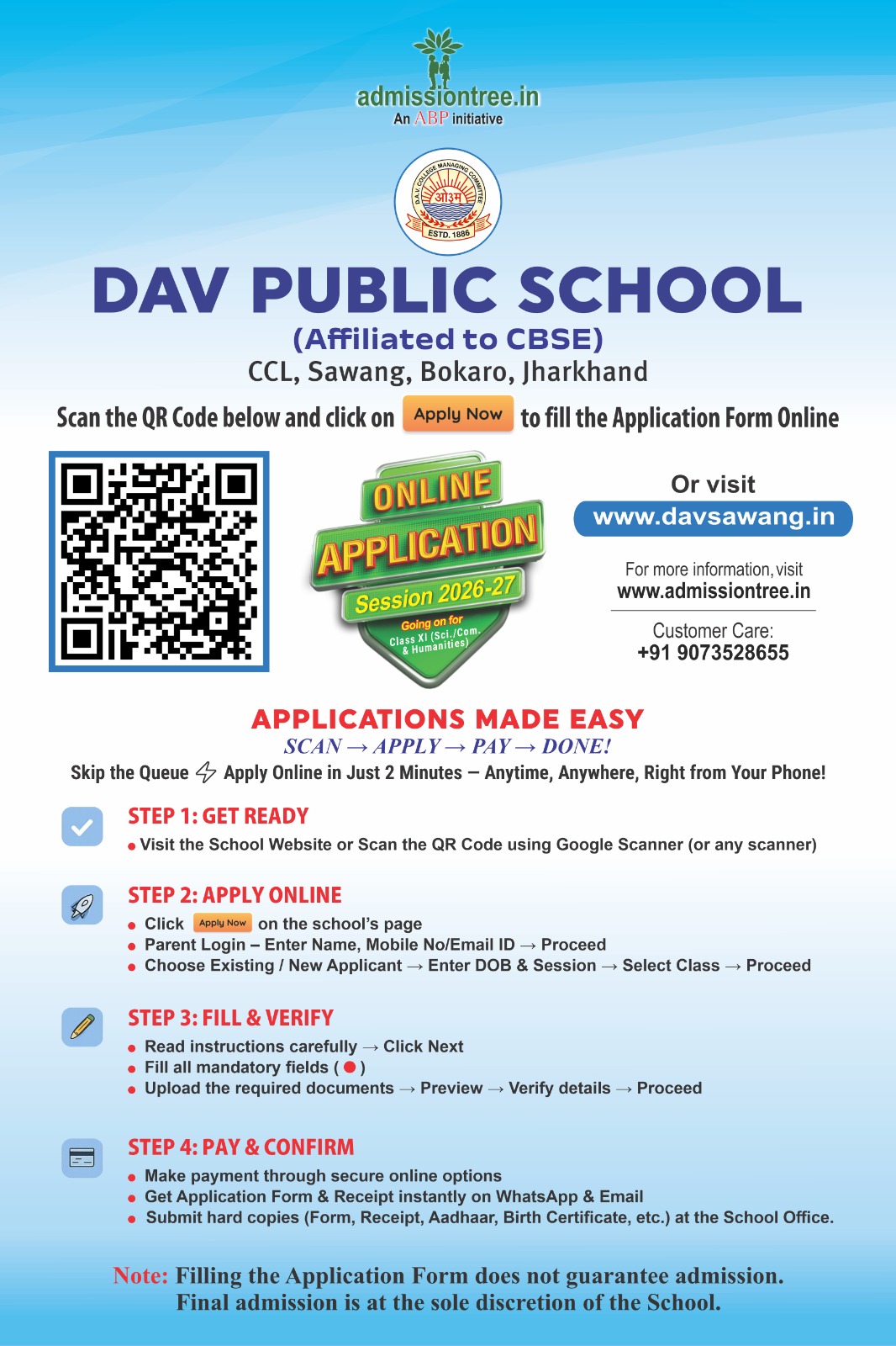 DAV Public School, Sawang, CCL was established in 1989 in collaboration with Central Coalfields Limited, Ranchi. It is one of the best schools of Jharkhand Zone-01 (Dhanbad) as well as one of the best schools in CCL. However it is situated in a very remote area in the lap of Coal mines.
